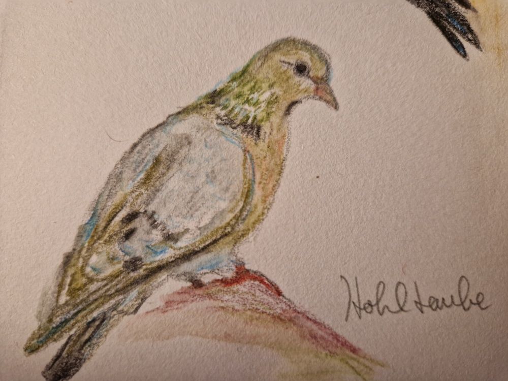 Diese Taubenart ähnelt etwas der „Straßentaube“. Allerdings ist der Unterflügel und Rücken grau, während diese Bereiche bei der Felsen- und Straßentaube weiß sind. Sie bilden auch Kolonien und Schwärme, bzw schließt sich Schwärmen an. Die Nahrungssuche findet natürlich überwiegend in offeneren Bereichen statt. Früchte und Samen von Wildkräutern und Zapfen, auch Eicheln und Bucheckern landen im Kropf. Sicher gäbe es noch mehr über Fortpflanzung und Taubenleben zu berichten, aber näher möchte ich nicht auf sie eingehen, der Artikel ist ja auch wieder sehr lang geworden