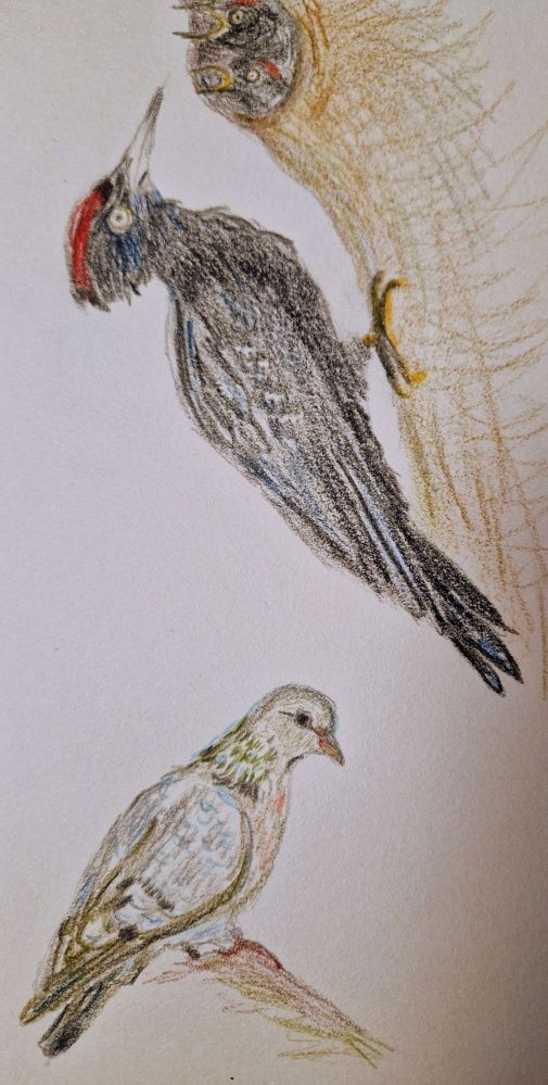 Warum ich die Hohltaube so hervorhebe? Jahrelang war der Schwarzspecht so selten, dass man fürchtete, er würde in Deutschland verschwinden. Und damit eben auch die Hohltaube. Denn sie „liebt“ Schwarzspechthöhlen, ist für die Brut darauf angewiesen. Sie versucht sie sogar dem Specht abspenstig zu machen, gleich wenn er sie gebaut hat. Da die Taube Nistmaterial in die Höhle schleppt, kann sie aber auch eine etwas marodere Höhle nutzen.