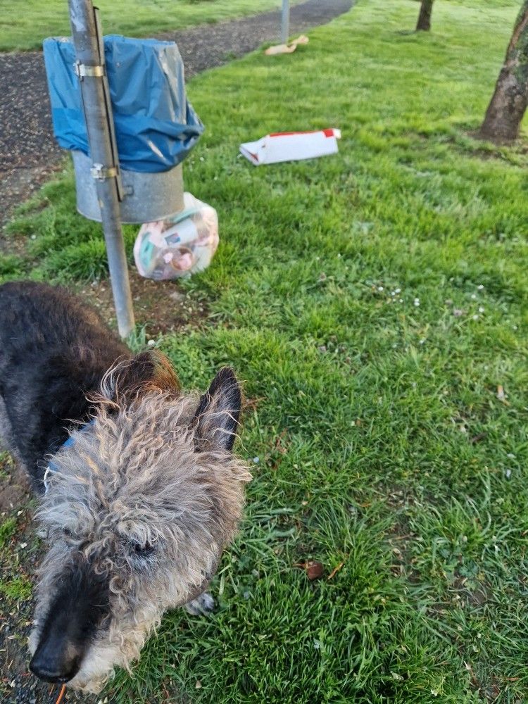Nicht nötig sind diese Hinterlassenschaften. Wie man auf dem 2. Foto sieht, wurde wohl der 30. im Park gefeiert. Immerhin haben sie den restlichen Müll (fast alles) in dem Beutel neben den Müll gestellt.