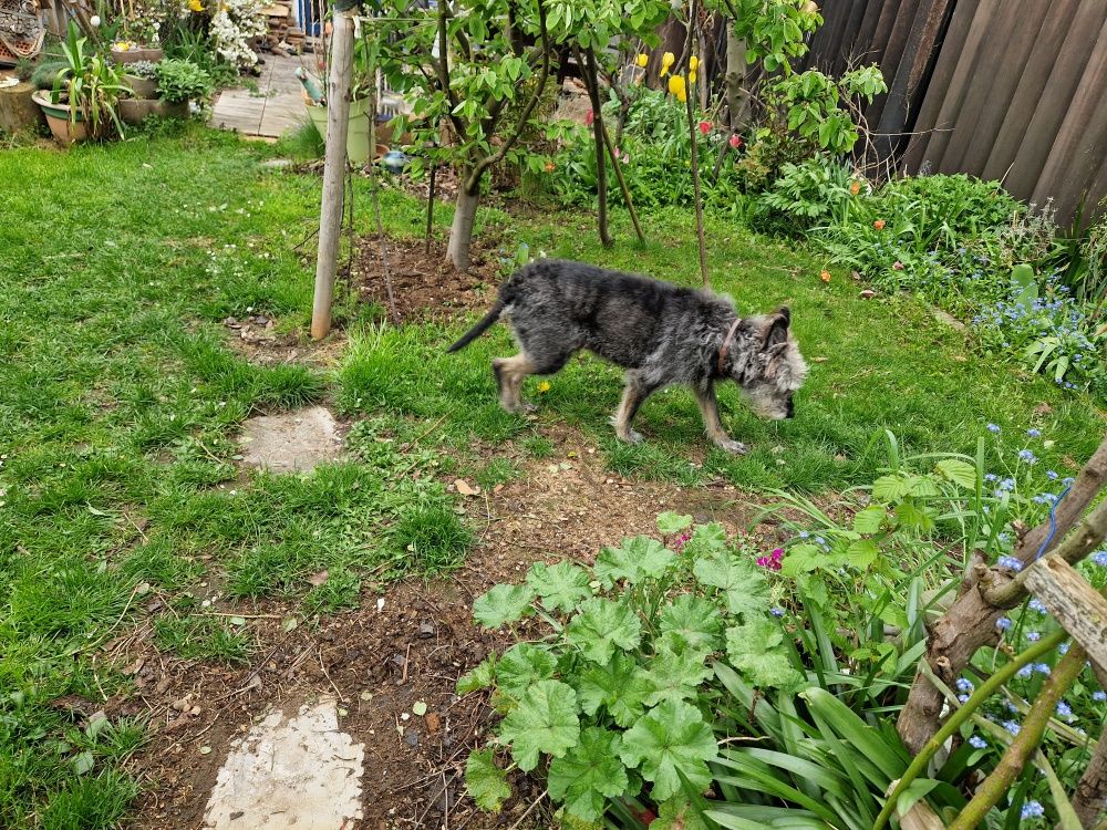 Natürlich war ich auch wieder im Garten, allerdings ist dieser Bereich auf dem Foto fertig. Ich musste eher so was wie Sand und Schutt schippen, Kompost (an einer anderen Stelle) unterarbeiten, Rasen mähen, letzten Grünschnitt (aus dem März noch) zurecht sägen und wegbringen. Es ist immer noch genug Arbeit. Immerhin können die Platten jetzt von der jetzigen Stelle weiter nach links verlegt werden. Da kann dann endlich ein neues Gerätehaus drauf. Ganz ohne geht ja nicht, Grill und Rasenmäher und die Gartenwerkzeuge müssen ja auch wohin.