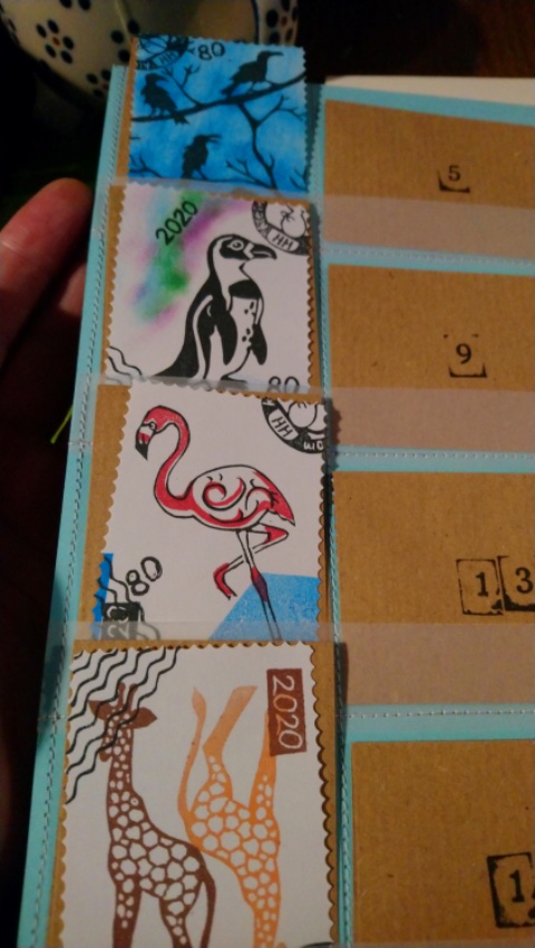 Einen ganz wunderbaren und schönen und selbstgemachten, besonderen Adventskalender habe ich von Maike bekommen und ich finde es nur so furchtbar, dass ich jetzt immer einen Tag warten muss um ein neues Briefmarkenmotiv zu entdecken, alle selbst geschnitzt und gedruckt. Herzlichste Dankesgrüsse auch auf diesem Wege nochmal.