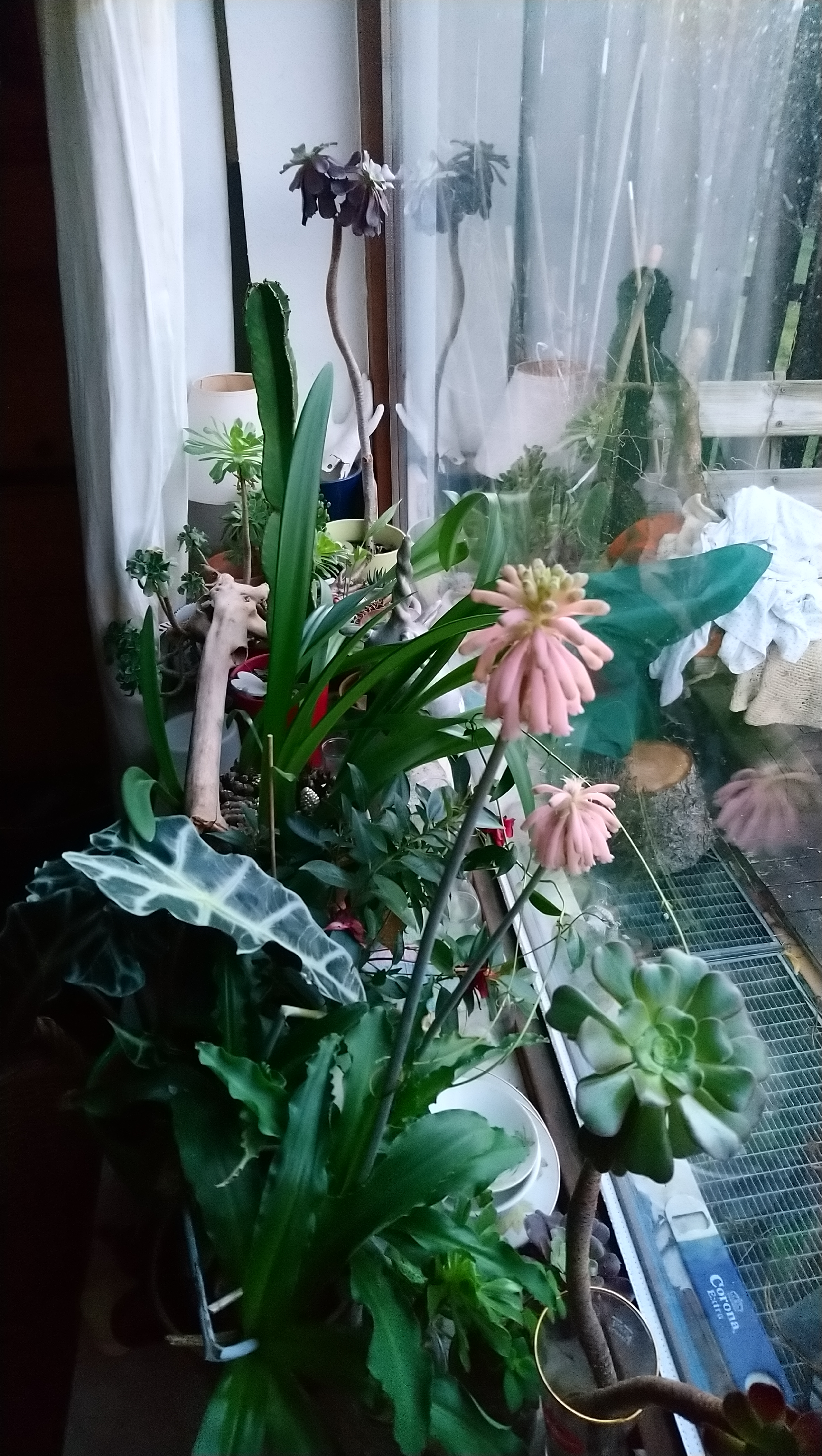 Innen steht alles natürlich hell und geschützt. Ich muss daran denken, draußen die Decke noch mal über den Pott zu legen, zusätzlich, auch wenn ich befürchte, dass es nichts mehr bringt bei dem Dauerfrost