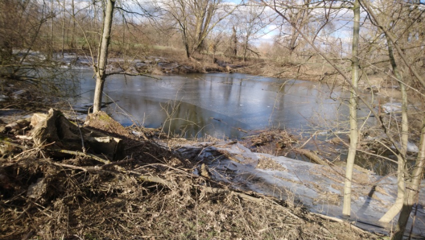 Hier hatte sich so viel Wasser gesammelt, jetzt eine Schlidderbahn