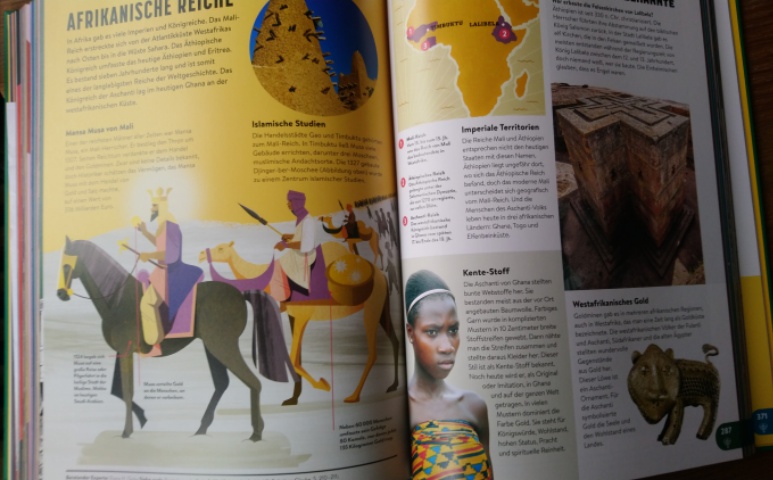 Biologie war dann schon eher mein Bereich. Bei dieser Abbildung finde ich z.B. unheimlich gut die Art der Gelenke erklärt. Natürlich kommt der Bereich Entstehung des Weltalls, der Erde, der Arten (selbstredend auch Dinosaurier) nicht zu kurz. Aber genau so wird Klima und Klimawandel verständlich dargestellt. Sehr gut hat mir unter Anderem der Beitrag zum Entstehen von Kalendern gefallen. Auch wusste ich noch nicht, dass die ersten Münzen aus Gold nicht rund, sondern eckig waren. Diese wurden im alten China genutzt, die ersten rundlichen (bohnenförmigen) Münzen aus Elektron (einer Legierung aus Gold und Silber) wurden um 600 v Chr. in der Gegend der heutigen Türkei genutzt.