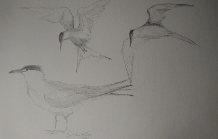 Meinen Vogel des Monats habe ich wieder vorgestellt. Der Stempel (oder vielleicht sogar Linoldruck) fehlt immer noch, aber erste Reaktionen von Euch zeigen mir, dass nicht nur ich den schnittigen Flieger mag. Dieser Vogel, zur Möwenfamilie gehörend, ist schon etwas Besonderes.