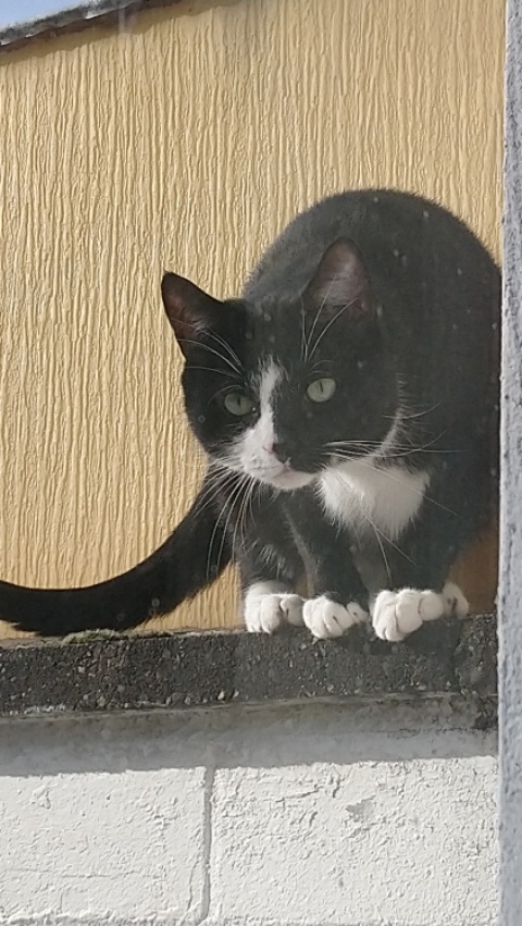 Die Nachbarn haben 3 sehr unterschiedliche Katzen, diese ist mutig und neugierig und auch mal hinter Vögeln her. Alle 3 Katzen sind nette Katzen, manchmal (wenn sie auf der Lauer liegt) scheuche ich sie schon mal, aber langfristig stört sie das nicht.