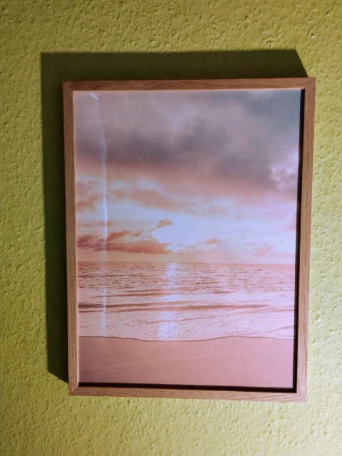 Bei den Jungs waren auch zwei Plätze frei. Die Geschmäcker verändern sich ja in dem Alter. Erst vom Kind zum Teen und nun geht es langsam zum wirklich selbstbestimmten Geschmack. So suchte sich der jüngere Sohn ein Poster aus, dass für ihn vor allen Dingen Entspannung symbolisierte, eine Abendstimmung am Meer: CALMING SEA. Genau wie seine Eltern liebt er das Meer und den Strand. Wie Ihr seht ist die Wand noch grün gestrichen und der Leuchtturm LIGHTHOUSE ON DUNE ist aus dem Wohnzimmer gewandert. Allerdings hängt in einem Baum, den ich dort als Übergang für die Ecke gemalt hatte, incl. Vögelchen. Das wird sich wohl bald mal ändern 😊