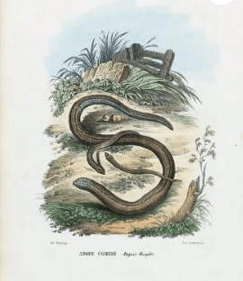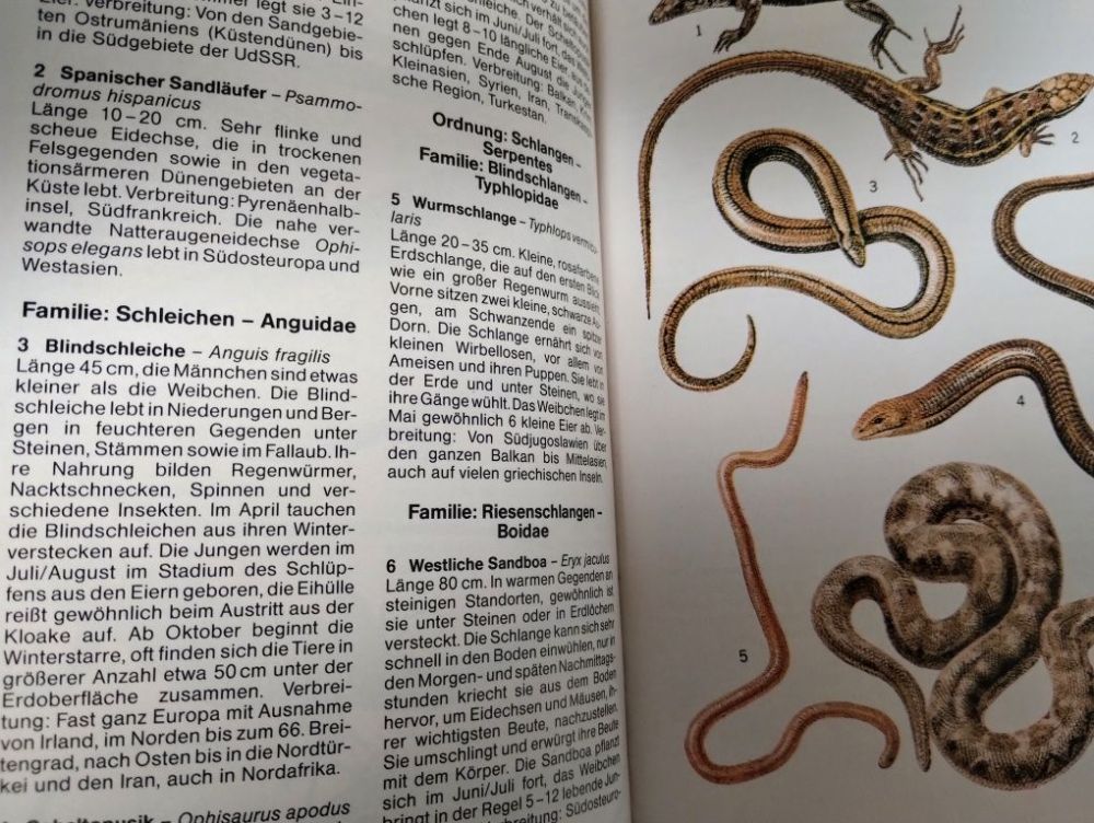 Über die Blindschleiche ist im Meyer`s Konversationslexikon von 1871 zu lesen: „Reptiliengattung aus der Ordnung der Saurier und der Familie der Schuppenechsen ohne Beine. Der Schwanz dieses bis eineinhalb Fuß langen Reptils ist sehr zerbrechlich (Bruchschlange, Glasschlange). Früher war es den Schlangen beigezählt.“