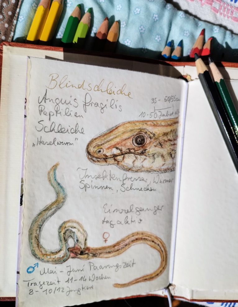 das war sehr interessant. Ich habe diesen Beitrag gerne gelesen und bewundere wieder einmal deine Zeichenkünste. Als Kind bin ich noch öfter Blindschleichen begegnet, aber jetzt schon lang nicht mehr. Dafür im letzten Jahr im Hessenpark mal einer schwimmenden Ringelnatter. Das habe ich gerade noch mal im Mainzauberblog nachgeguckt.