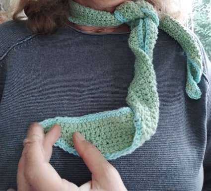 Premiere, da kalt und für Hals notwendig: selbstgehäkelter, leichter Baumwolle Schal.