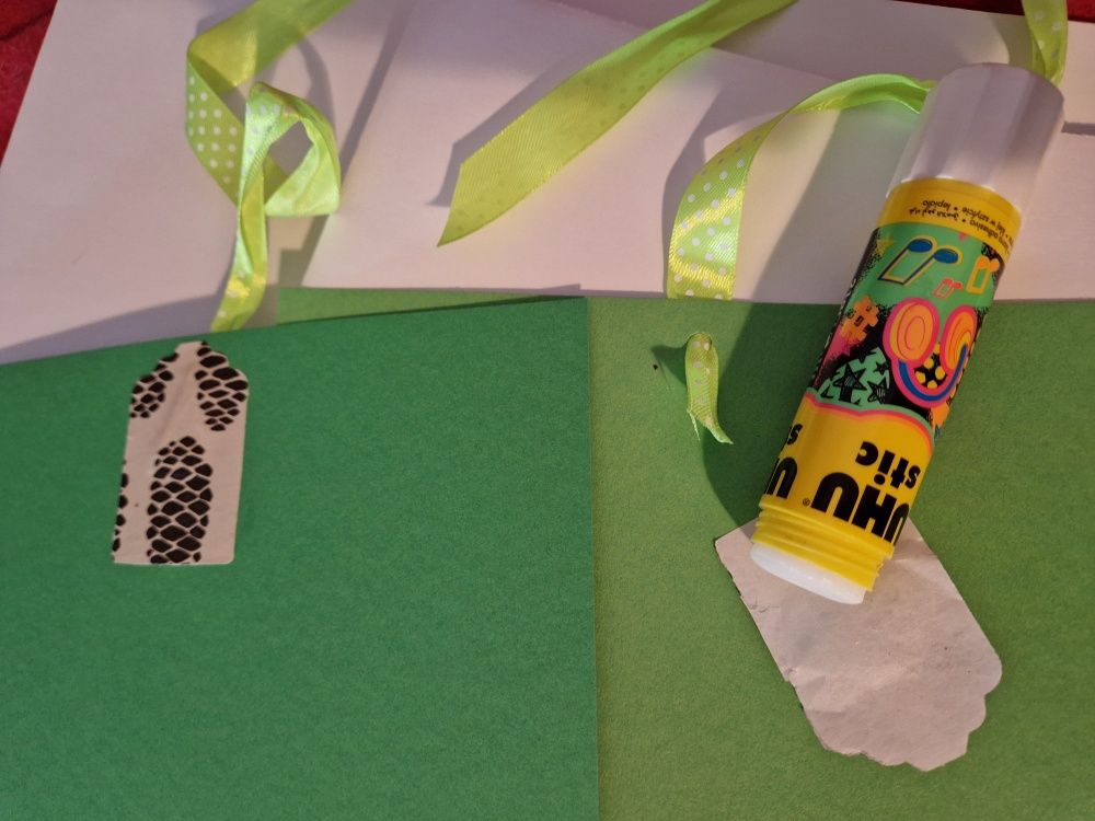 Was Ihr benötigt ist Pappe und Papier, Kleber, etwas Klebeband und zwei Bänder.
