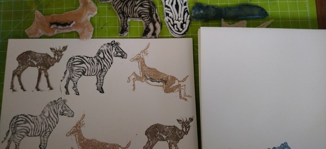 Im Glas daneben ist noch ein wenig „Kontrast Programm“ mit den letzten Blüten des Johanneskraut. Schnell wurde dann auch ein kleiner Stempel von mir geschnitzt: