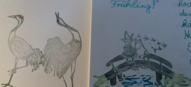 Maiglöckchen (Die kommen auf alle Fälle noch dran, dass werden dann Maiklöckchen, hab soooo liebe Post bekommen von einem Engel aus Hamburg, mein Mann hatte da dann gleich diese Wortschöpfung, aber ich bin noch am überlegen und skizzieren, vielleicht wird das doch eher ein Aquarell oder Linol. Jedenfalls bin ich materialtechnisch gerettet worden!)