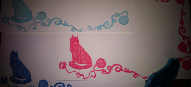 Hier seht Ihr, dass ich mich schon mal mit dem Thema beschäftigt habe und Stempel, soewie Linol geschnitzt habe.