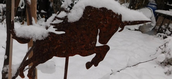 Außerdem zeige ich Euch noch meine neue und überaus wärmende Halsbedeckung. Ich habe aus aufgeribbelter Wolle ein kleineres Dreieckstuch gehäkelt und der Clou: verbunden mit einer alten, hölzernen Garnrolle. Wenn ich mir das nun um den Hals wickel, kommt die Garnrolle immer schön nach vorn. Genau richtig und rechtzeitig noch zur Jahreszeit. Außerdem kann ich den Schal sehr gut vor mein Gesicht ziehen, sehr wichtig um auch bei Kälte wärmere Luft einatmen zu können.