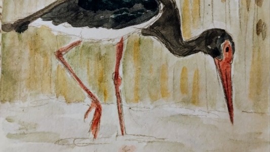 Aquarell Schwarzstorch