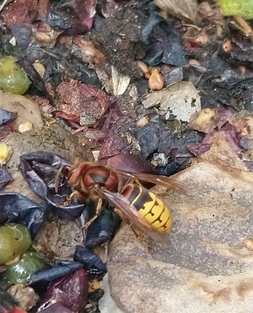 Sobald es nicht mehr ganz so super heiß ist, leben die Tiere auch gleich auf. Wespen und einige Hornissen lieben offensichtlich einen kleinen Schwips zu haben. Am liebsten gingen sie an diese leicht vergorenen Trauben.
