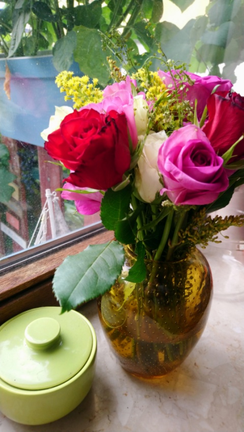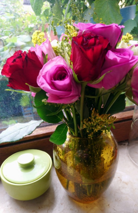 Im Garten mag „Herzogin Christiana“ dieses Wetter gerade sehr. Oft habe ich von diese schönen, duftenden Rose gar nicht so viel, Regen lässt die Rosenblüten nämlich zusammen- und abfallen. Nun blüht sie unter der Hitze erst richtig auf! Wenn ich morgens die Tomaten gieße, schnupper ich immer so gern an ihr.