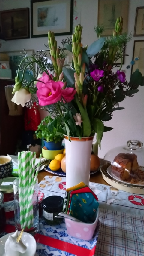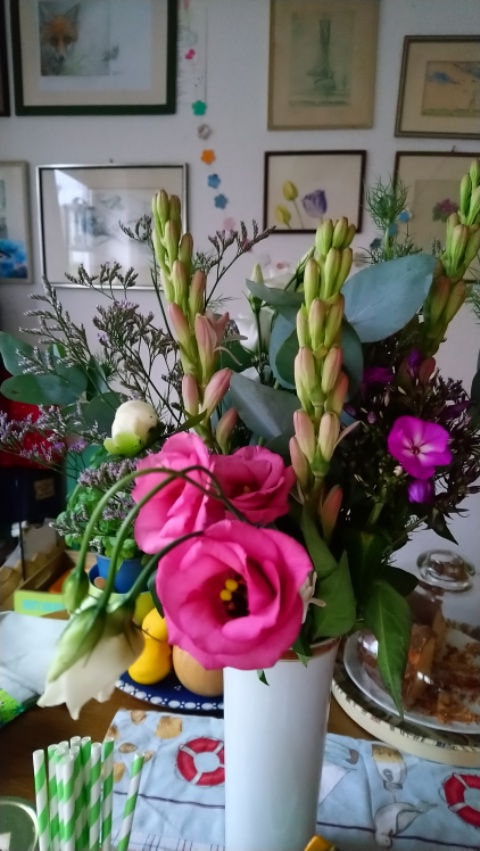 Einen duftenden und herrlich blühenden Strauß bekam mein Geburtstagsschatz von Gästen geschenkt. Der lila Phlox verstöhmt seinen Wohlgeruch im ganzen Zimmer und lässt schon etwas Sommer erahnen. Den Blumenstrauß verlinke ich gern wieder bei Holunderblütchens Flower Friday