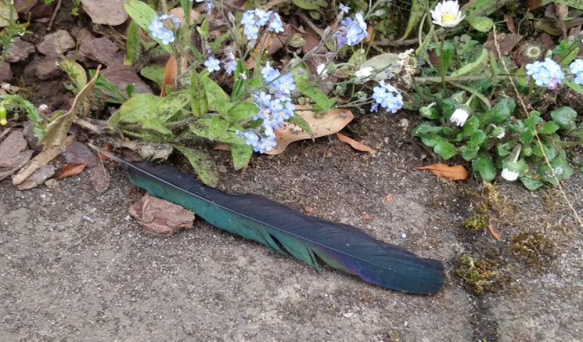 Ich weiß nicht warum, aber irgendwie finde ich immer wieder so Kleinigkeiten an denen alle anderen (na ja fast alle anderen Menschen) vorbei laufen. Ist das nicht einfach eine traumhafte Feder? So frech die Elstern im Garten hier sein können, sie sind wunderschön und interessant. Vielleicht sollte ich über sie schreiben, zum Jahresprojekt, genug zu erzählen gibt es über sie. Zum Mai hin kommt das bereits vorbereitete Portrai, lasst Euch überraschen.