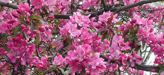 Hier im Ort gibt es auch einige Zierkirschen Bäume und natürlich sowieso einige richtige Kirschen. Aber ich mag besonders diese Zieräpfel Blüten! Nach dem Winter ist mir immer nach Farben!
