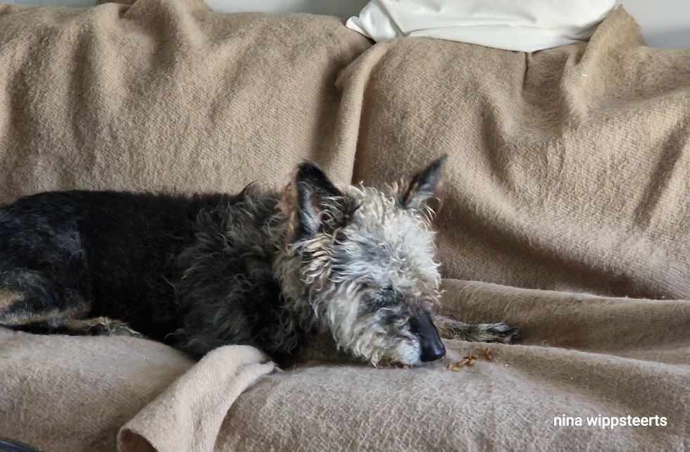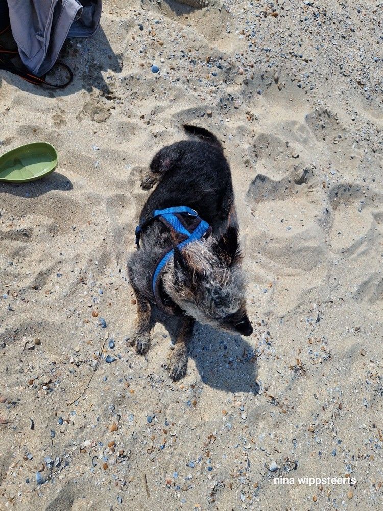 Wir machen gerade zu zweit, mit altem Hund, in Zeeland etwas Urlaub. Heute soll es sehr warm werden, der Ostwind ist aber noch recht kühl beim Hundegang. Der alte Herr mag trotzdem nicht…