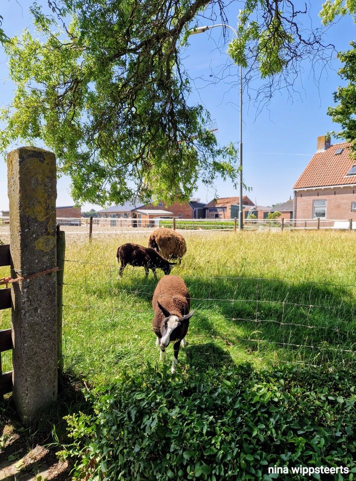 Ein wenig Bewegung vor der Hitze per geliehenen e-bike. Leider habe ich nicht gemerkt, dass die Windmühle hinter den fotografierten Schafen durch den Ast abgedeckt wird.