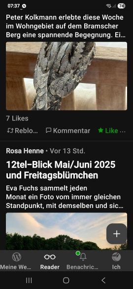 Daheim, der Schatz hat dem Hund Futter gemacht. Bei einem Kaffee schaue ich in den WordPress Reader und lese.