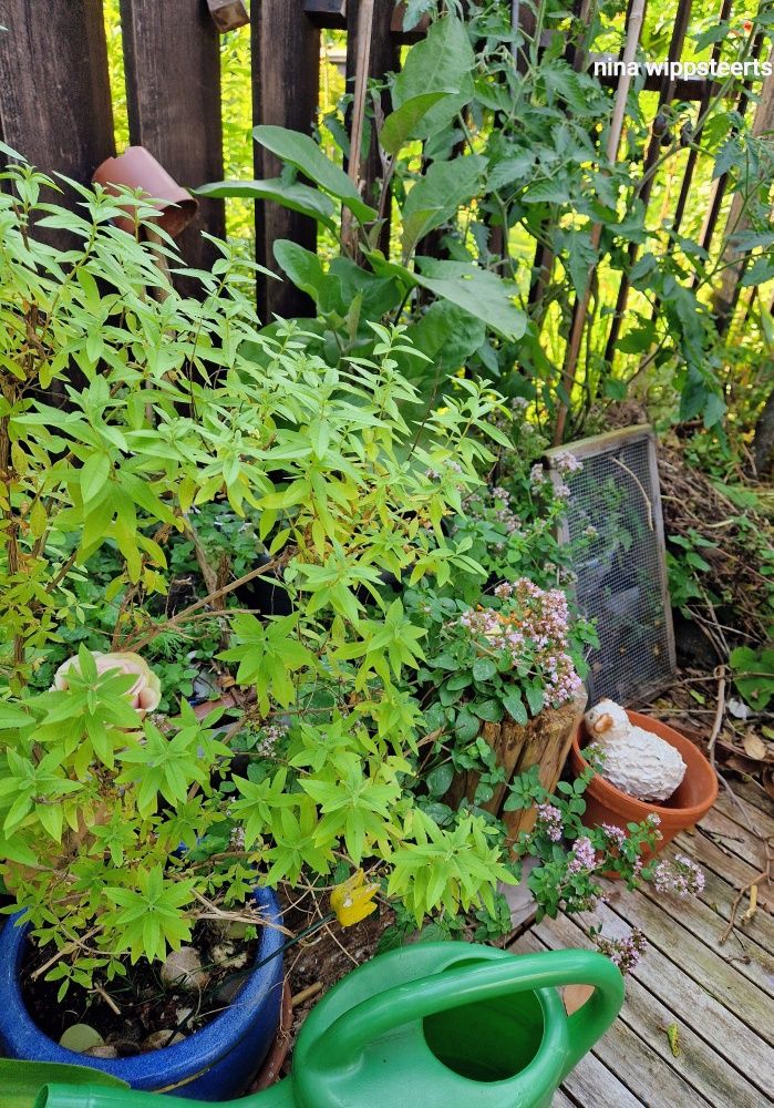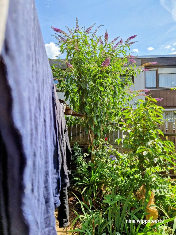 Wäsche rein holen und Rasen mähen. Kleines bißchen also nur draußen schaffen, aber danach tropfe ich vor Schweiß. Trinken!