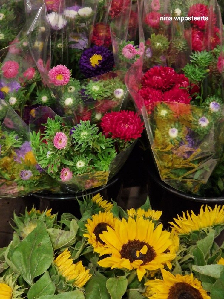 Im Einkaufszentrum lächeln mich Blumen an, aber sie mit dem Rad zu transportieren und bei der Hitze, da lasse ich sie lieber stehen.