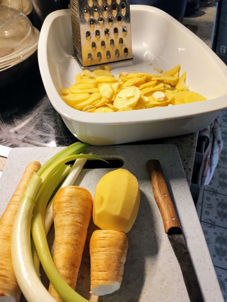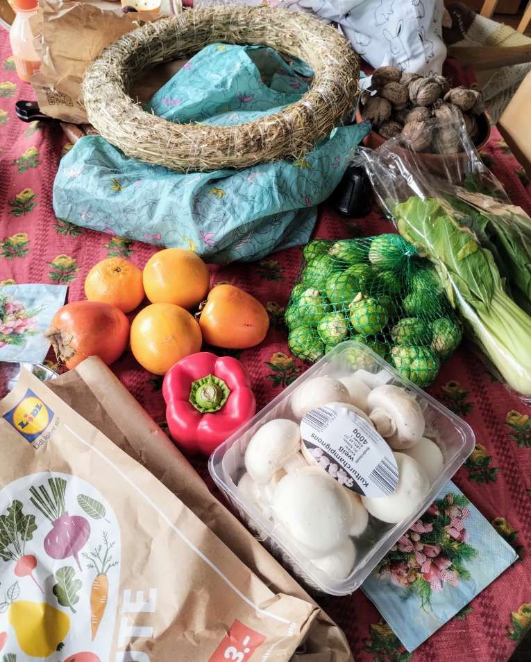 Auf dem Rückweg habe ich noch einen Abstecher beim auf dem Weg liegenden Discounter gemacht, zu dem ich eigentlich kaum gehe. Der hat aber jetzt Retter Tüten und die ist sehr gut. Die Sachen haben nicht Mal Flecken! Und es wird gleich der Rosenkohl daraus zu den Kartoffeln gekocht. Mittagessen vergesse ich übrigens zu fotografieren, da ich gleich im Anschluss dann losfahre. Der Sohn ist durch Begutachtungen und Röntgen und mit einem blauen Auge davon gekommen.