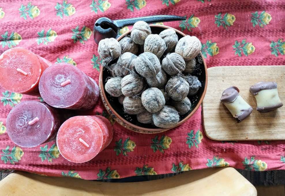 Außerdem nutze ich die Gelegenheit und hole die Adventskerzen und einen Kranzrohling. Die Walnüsse haben wir von einem Freund geschenkt bekommen und es gibt die letzten „Staubsauger“ (wer wissen will, wie man diese schwedischen Punschrollen selber machen kann, hier lang)