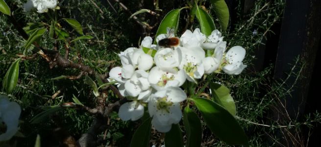 Wusstet Ihr übrigens, dass der Apfelbaum (und andere Obstbäume,) zur Familie der Rosengewächse gehört? Und dass die Deutschen Weltmeister im Essen von Äpfeln sind? Oder dass schon die Kelten und Germanen aus den kleineren, heimischen Früchten Muß und Most kochten? Die fünfzähligen Blütenstände sind für viele Menschen schon als Barbarazweige (Kirschzweige, die zu Weihnachten zum blühen gebracht werden,) etwas Besonderes und der Apfelbaum steht für Fruchtbarkeit, Erkenntnis, Reichtum und Leben. Obstbäume stehen fast in jedem Garten, auch heute noch und sei es als kleinwüchsiges Spalierobst im grossen Topf.