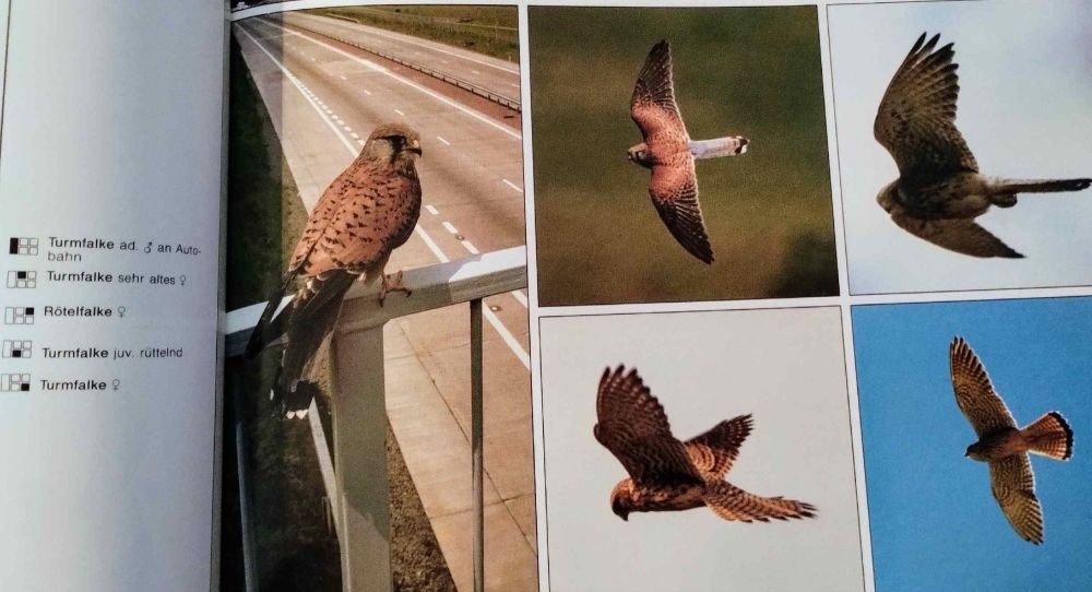 Das Federkleid der Weibchen und der Jungvögel ist übrigens unauffällig rotbraun mit dunkler Querbänderung. Das ältere Männchen bekommt dann die etwas auffälligere, graublaue Kopfhaube, die rotbraunen Flügel mit dunklen Schwungfedern und graublauen Schwanz mit schwarzer Endbinde (und den weißen Flecken dort). Auffällig an dem 34-36 cm großen Vogel ist die dunkle, hübsche Zeichnung im Gesicht (Zügelband). Bei einem berinngten Vogel konnte ein Alter von 18 Jahren festgestellt werden. Sie sind übrigens sowohl Zug- und Standvögel, als auch Teilzieher, das hängt an der geografischen Lage ihres Lebensraums, der sich grob skizziert von Europa über das Mittelmeer hinaus bis Asien erstreckt. Im Frühjahr beginnen die sonst eher einzelgängerisch lebenden Vögel mit der Balz. Oft kennen sich die Partner schon. Gerne wird ein alter Nistplatz wieder genutzt, auch wenn es nur einfache „Nester“ werden, mit wenig Polsterung. Gemeinsam achten die Vögel nun erst aufeinander (das etwas größere Weibchen brütet auf 4 – 7 Eiern ca 33Tage , Männchen sorgt für Nahrung) und dann wird die Brut zusammen aufgezogen. Wenn die Jungvögel so weit sind, bringen die Eltern ihnen auch die Jagd bei. Der Familienzusammenhalt (vor allem den nächsten Monat lang) ist stark bei ihnen. Trotz der elterlichen Fürsorge und Ausbildung überstehen von den Jungvögeln etwa nur 50%, wie es oft bei Raubvögeln ist. Witterung, andere Raubvögel, Nahrungsangebot für die noch unerfahrenen Jäger spielen hier eine Rolle. Auch unsere Zerstörung von Lebensraum bietet ihnen immer weniger Jagdmöglichkeiten (Versiegelung), obwohl dieser Vogel sich so gut anpasst und auch nicht gefährdet ist. Anhand der Speiballen können Wissenschaftler sehr gut sehen, wovon sich die Vögel ernähren.
