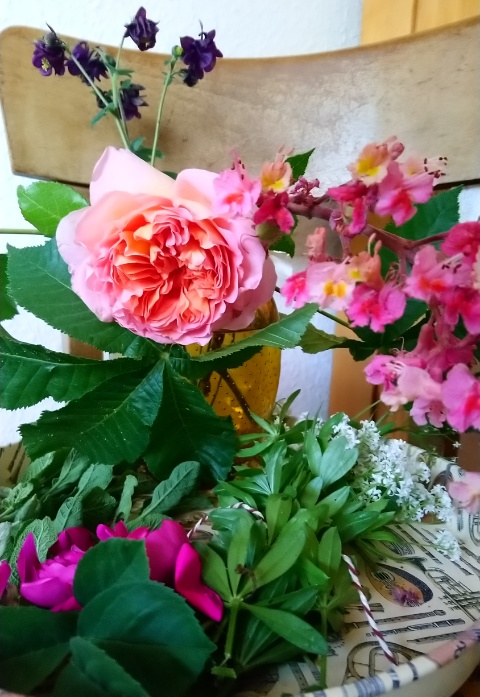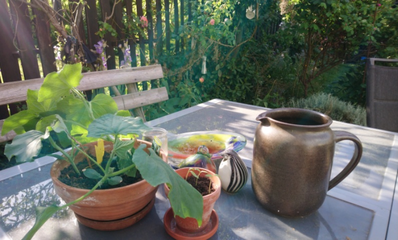 Schon vor 9.00 Uhr hätte ich Euch fast 12 Bilder geben können. Es soll zwar nicht wieder so heiß werden wie gestern, aber wer weiß! Also ganz früh und frisch in den Garten. Nur Gartenfotos mag ich Euch dann aber auch nicht zeigen. (Kräuter und Blumen wurden geschnitten.)