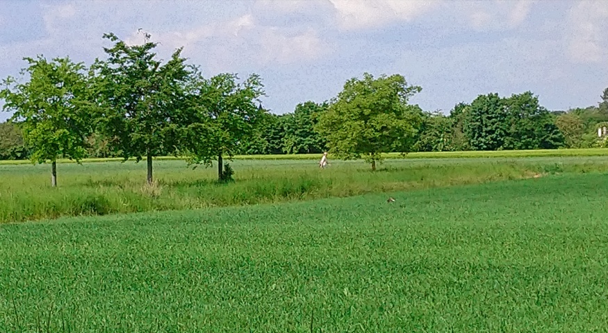 Aber erst mal Mittagessen zum Teil vorbereiten. In den Schnellkochtopf kommen unten Pellkartoffeln, oben RübengemüseHeute kein staubiger, trockener, stürmischer Wind. Auch die Temperatur geht wieder. Aber Regen ist weit weg, auch die nächsten Tage. Heu wird gemäht. Hier ist viel Klee mit eingesät worden. Natürlich steht auch das Korn schon hoch. Rechts und links neben der Heuwiese sind BrachflächenLange habe ich hier gestanden. Kibitze sind im Getreide versteckt. Zwei habe ich entdeckt. Vielleicht seht Ihr den einen (hellen Punkt), nicht die Radlerin. Da wird eine/r gegenüber der Rabenkrähe ganz schön kiebig. Ist das nicht „schreiend“?! Den „Schwimmwurm“ (Seenadel?) finde ich fast schon wieder gut. Endlich erfahre ich, wie es im Powder Mage Universum (hoffentlich mit einigen Lieblings Charakteren) weitergeht, frisch aus der Buchhandlung.