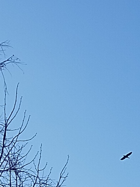 Auf dem Weg zum Einkauf eilen zwei Gänse über mich, ich erwische mit der Kamera nur eine, denn ich schaue nach den zwei Schwanzmeisen, die im Baum daneben emsig umher huschen, aber viel zu klein für ein Foto sind. Den Himmelsblick schicke ich dann mal gleich zur Galeria Himmelsblick.