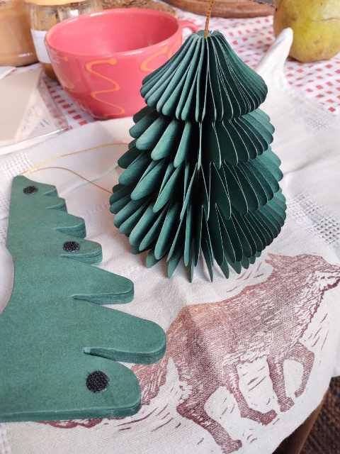 Diese Tannenbäumchen mag ich sehr und habe letztens welche gesehen und zugeschlagen und nun sollen sie einen Platz bekommen. Ich mag auch die Wabenbälle, die man ja eigentlich selber machen kann (zB aus Kaffeefiltern und schönem Papier) sehr, vielleicht schaffe ich die noch vor Weihnachten. Wie so vieles.
