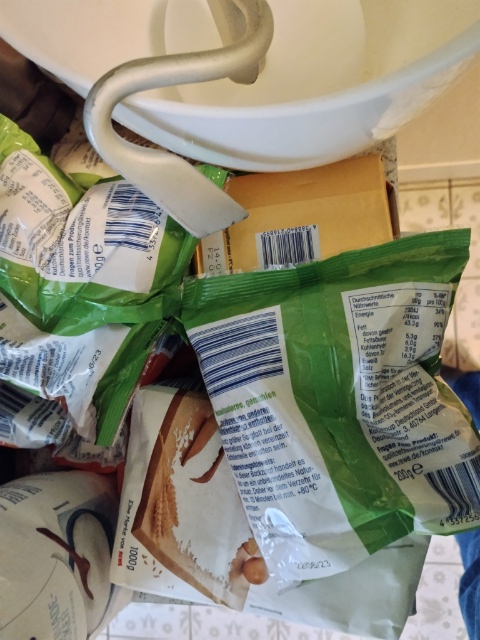 Im Einkaufszentrum gibt es nicht nur „breites Grinsen Dank pinkem Badezeugs“ sondern Deckel für Weckgläser und das ein oder andere noch. Dummerweise habe ich zu viel Zeit bei den Kiebitzen „vertrödelt“, so das ich zurück doch den kurzen Weg radeln muss, die Kartoffeln sollen ja noch garen und der Gurkensalat geschnippelt werden. Telefonieren, der Schatz kommt aus dem Homeoffice essen, … Nach dem Essen baut der Sohn, mit geringer Hilfe meinerseits, eine neue Mischbatterie an. Dann fix noch mal zum Baumarkt, ich habe den Rollogurt vergessen und er braucht Dremel Teile. Ich würde mich zu gern länger mit dem Buch und Kaffee hinsetzen, aber Arbeit wartet noch. Da der Hund geduscht wurde, muss ich Dusche und Bad putzen. Ich habe ja meine Bilder doch schon voll! Und da war ja auch einiges zum Genießen dabei, da braucht es keine Putzbilder, Wäschestapel, Papierkram…