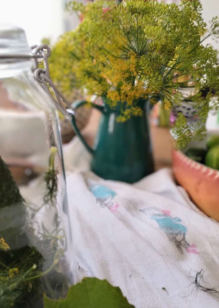 Im Laden bekam ich die guten Einlegegurken und den entsprechenden Dill. So entstand aus den Blütenständen ein ganz besonderer Hochzeitstagstrauß. Einfach aber besonders und dufte! Genau wir!