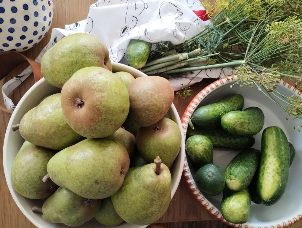 Die Birnen von der Wiese ließen sich gut pflücken, sind knackig und dürfen noch ein wenig nachreifen.