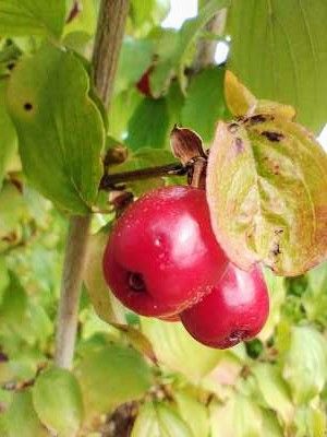 Ich habe beim Radeln durch die Felder Kornellkirschen entdeckt.