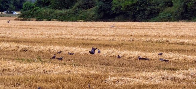 Überall fahren hier schon Mähdrescher und auf den frischen Stoppelfeldern hüpfen Tauben, Krähenvögel und auch so mancher Raubvogel späht im Tiefflug nach Beute.