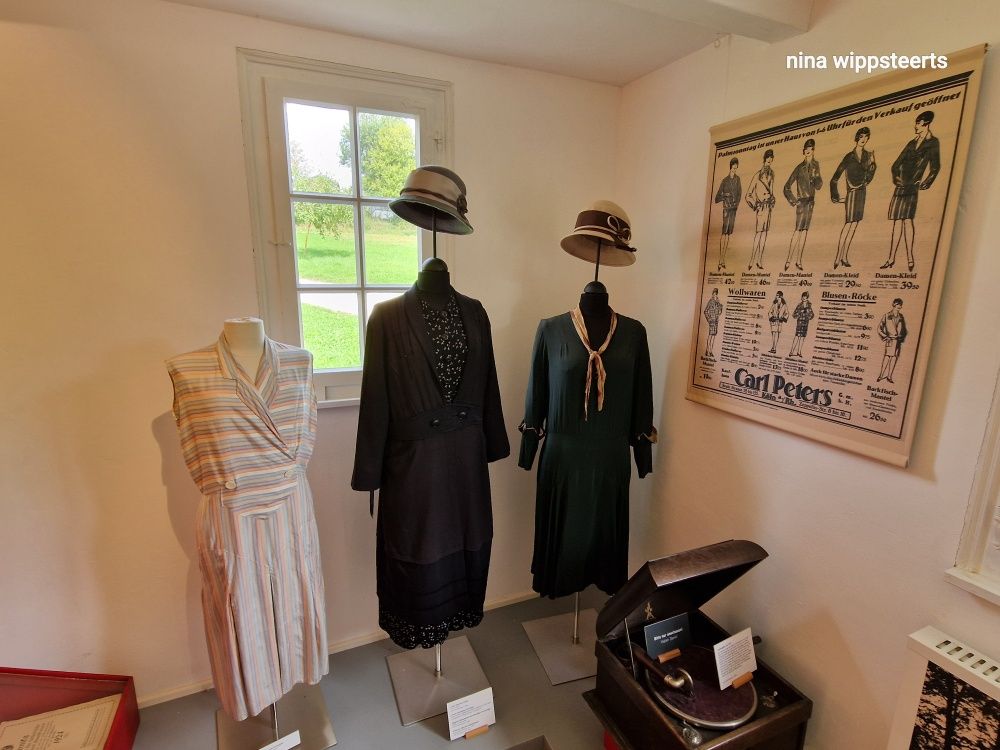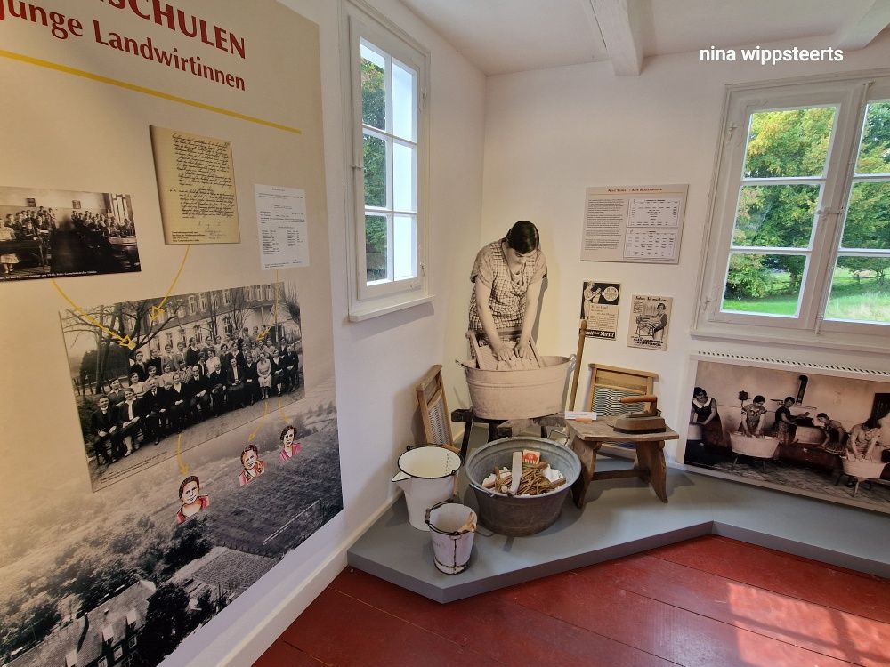 In einem der kleinen Häuser geht eine Ausstellung nur um die Rolle der Frauen, ihren Berufen, wenn sie denn einen hatten außer Hausfrau, einfache Bäuerin, Dienstmädchen o.Ä.. Wenn sie etwas „mehr“ lernen durften, konnten sie Lehrerin, Prokuristin oder Landfrau werden. Auch um ihr Wahlrecht, Mode und Haushaltsveränderungen durch neue Maschinen und Mittel ging es dort.