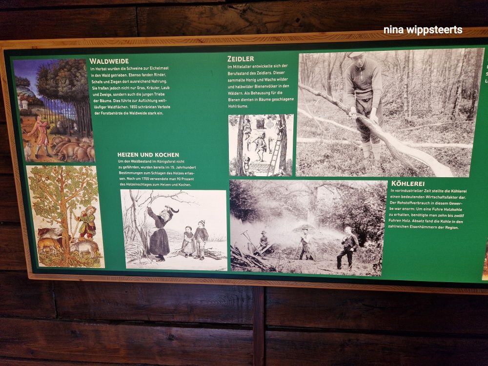 Sicher erkennt Ihr auch einiges wieder. Den Schreibtisch kenne ich zB., den Herd in kleiner. Überhaupt sehr viel hier erinnert mich an meine Großeltern. Das Obergeschoss ist der Geschichte der Waldarbeit und Holzverarbeitung und ihrer Nachhaltigkeit , sowie dem Klimawandel und den daraus resultierenden Veränderungen gewidmet. Berufe, Tiere, Hölzer