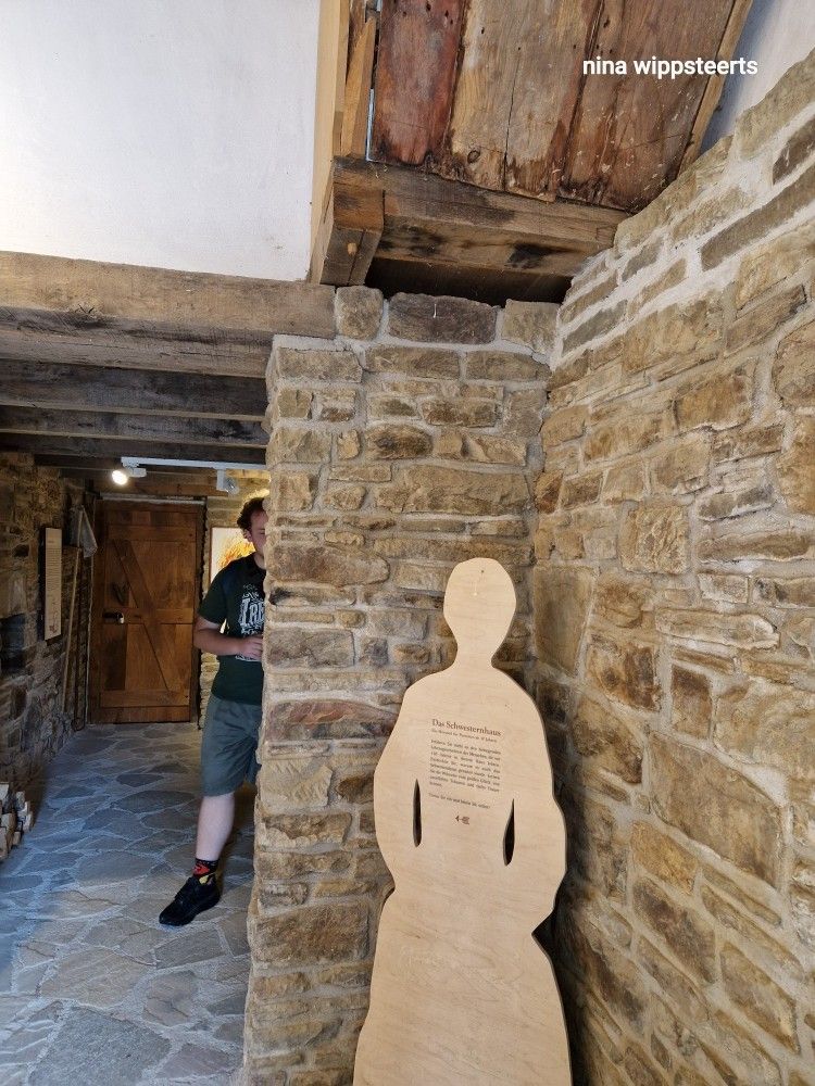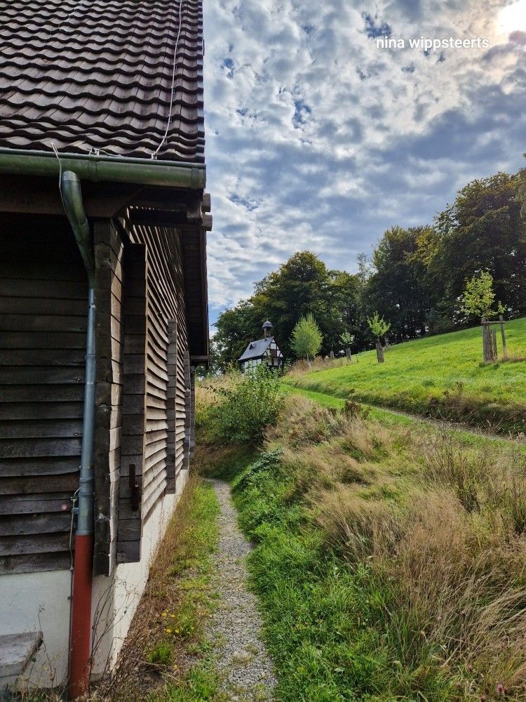 Bei diesem „Schwesternhaus“ konnte man der Geschichte zuhören. Ein typisches Fachwerkhaus, 1684 begonnen und bis 1922 bewohnt. Landwirtschaft mit Nebenerwerb war recht normal im Bergischen, die Uhrmacherwerkstatt im Obergeschoss konnten wir heute nicht ansehen.