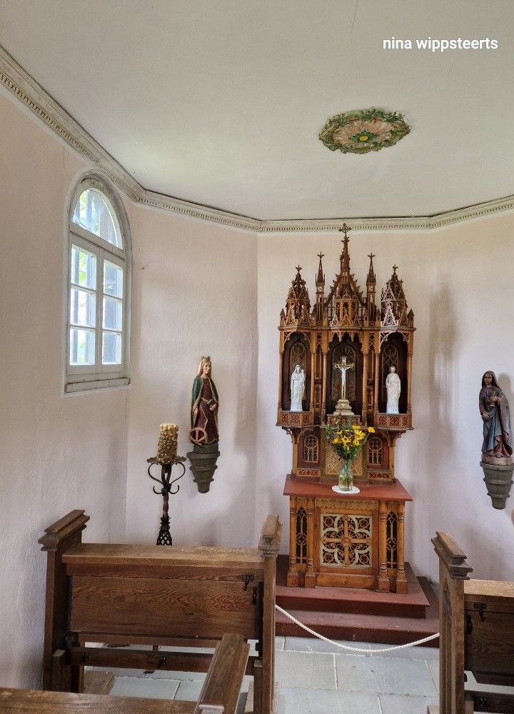 Der Altar und die Figuren sind teils selbstgemacht, die Kapelle war im Privatbesitz. Wie wichtig doch der Glaube war, Hoffnung gab sieht man auch an fast jedem Gebäude.