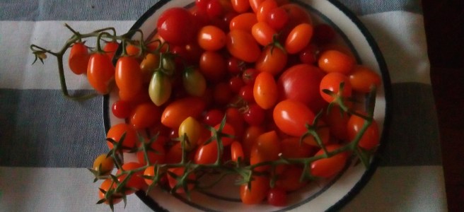 Blühendes ist etwas weniger zu finden, aber die Tomaten leuchten und die Birnen ziehen die Äste herunter. Vom ersten Fallobst der öffentlichen Apfelwiese habe ich mein geliebtes Apfelmus eingekocht und Apfelchips getrocknet. Nach dem überreichen letzten Erntejahr hängen viel weniger Früchte dran. Auch Quitten gibt es nur zwei Stück. Wie sieht das bei Euch dieses Jahr so aus? Manchmal sind es ja nur wenige km, ob die Ernte durch zu viel oder zu wenig Wasser, gut ausfällt. So z.B. ist es dieses Jahr so, dass das Sauerland (daheim) hat nicht Mal die Hälfte des Wassers bekommen hat, wie hier um die Siegmündung gefallen ist, das war früher anders herum. Selbst an der Sieg ist es rechts und links des Flusses stark schwankenden. Microklima. Wie es nun wohl die nächsten Jahre wird?