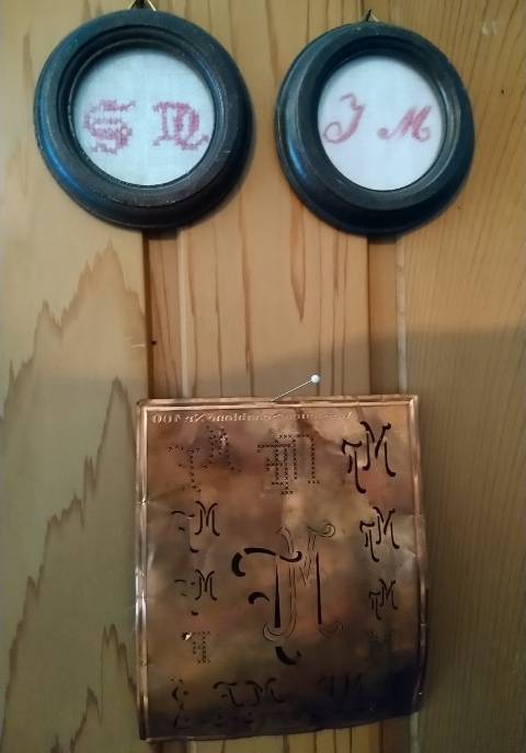 Meine Mutter hat noch viele Stofftechniken gelernt, sowohl in der Schulzeit, als auch in der Ausbildung. Von ihr habe ich die Liebe zu Leinen geerbt. Ich durfte ihre kleine Sammlung von Monogrammen fotografieren und heute hier zeigen. Da sind sowohl eigene, als auch „gefundene“ Stickereien bei. Auch eine Schablone seht ihr hier. Denn jedes Monogramm sollte gleich aussehen, wenn es erstmal in der Aussteuer Kiste oder Truhe verschwand.