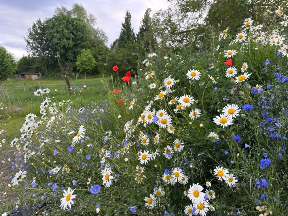 Der beste Freund meines Mannes hat letztes Jahr einen Naturgarten angefangen anzulegen. Am Haus ist ein kleiner Hang wo der „fette Boden“ liegt und entsprechend eine hohe Fülle an rein heimische Blüten sich gen Sonne streckt und dich im Wind wiegt. Wie „der Gärtner“ schon meinte, der gute Boden lässt die Blumen, die auch viele von Euch kennen, so stark wachsen, dass viele kleinere Blumen nicht zu sehen sind. So sammelt man auch als Naturgärtner Erfahrungen. Er wird viele Blumen herausnehmen, vor allem Mageritten und diese versetzen und verschenken. Auch der Natternkopf soll sich nicht mehr so stark versamen. Viele dieser wilden Pflanzen überleben nur durch Versamung.